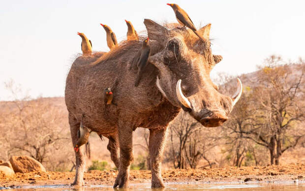 Фотограф дикой природы Гари Джонс снял в Южной Африке настоящего Пумбу из Короля льва с птицами на спине.