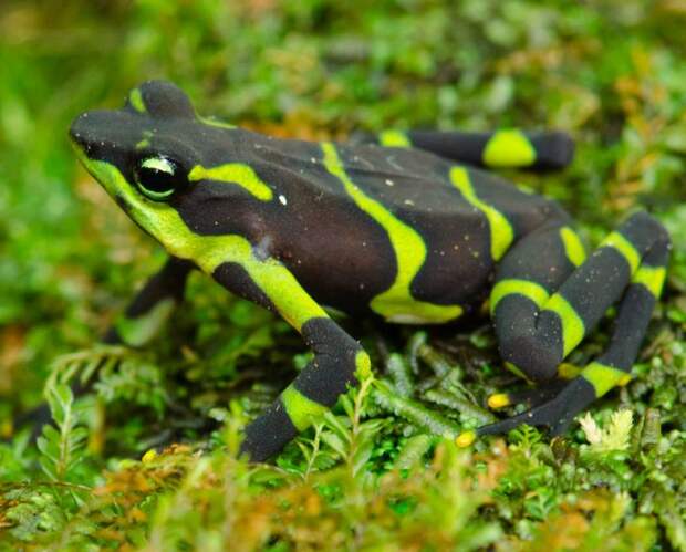 Считается одна из самых ядовитых жаб на планете. Обитает это симпатичное создание в природных условиях Панамы и Коста-Рики. Отличается достаточно ярким окрасом, и небольшими размерами, в пределах 5 см. Как правило, самцы значительно меньше самок и вырастают в длину до 3-х см. В случае попадания яда на кожу человека, происходит блокировка нервных окончаний, что приводит к потере координации движений и появлении судорог, что приводит к весьма печальному исходу – полному параличу.