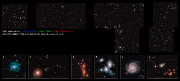 Избранные интересные объекты на изображении обзора CEERS.